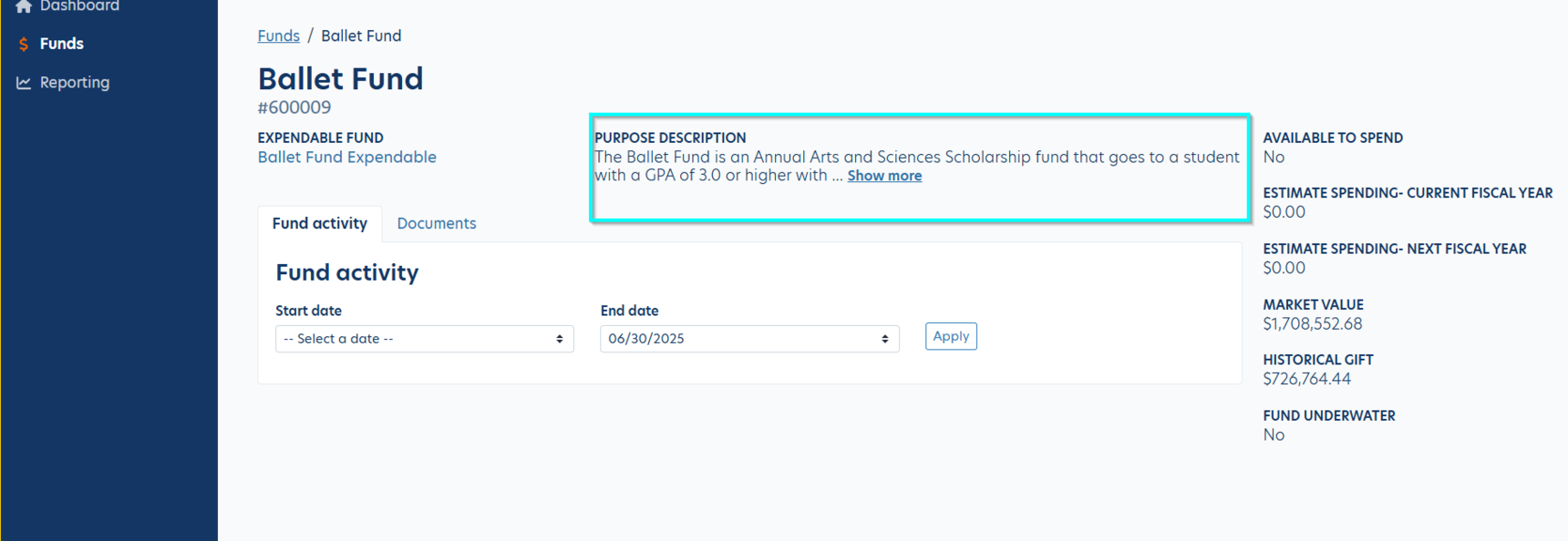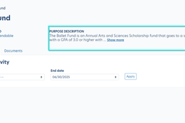 - Purpose Description field has been moved from an information icon to an easily viewable field on the Fund Profile.